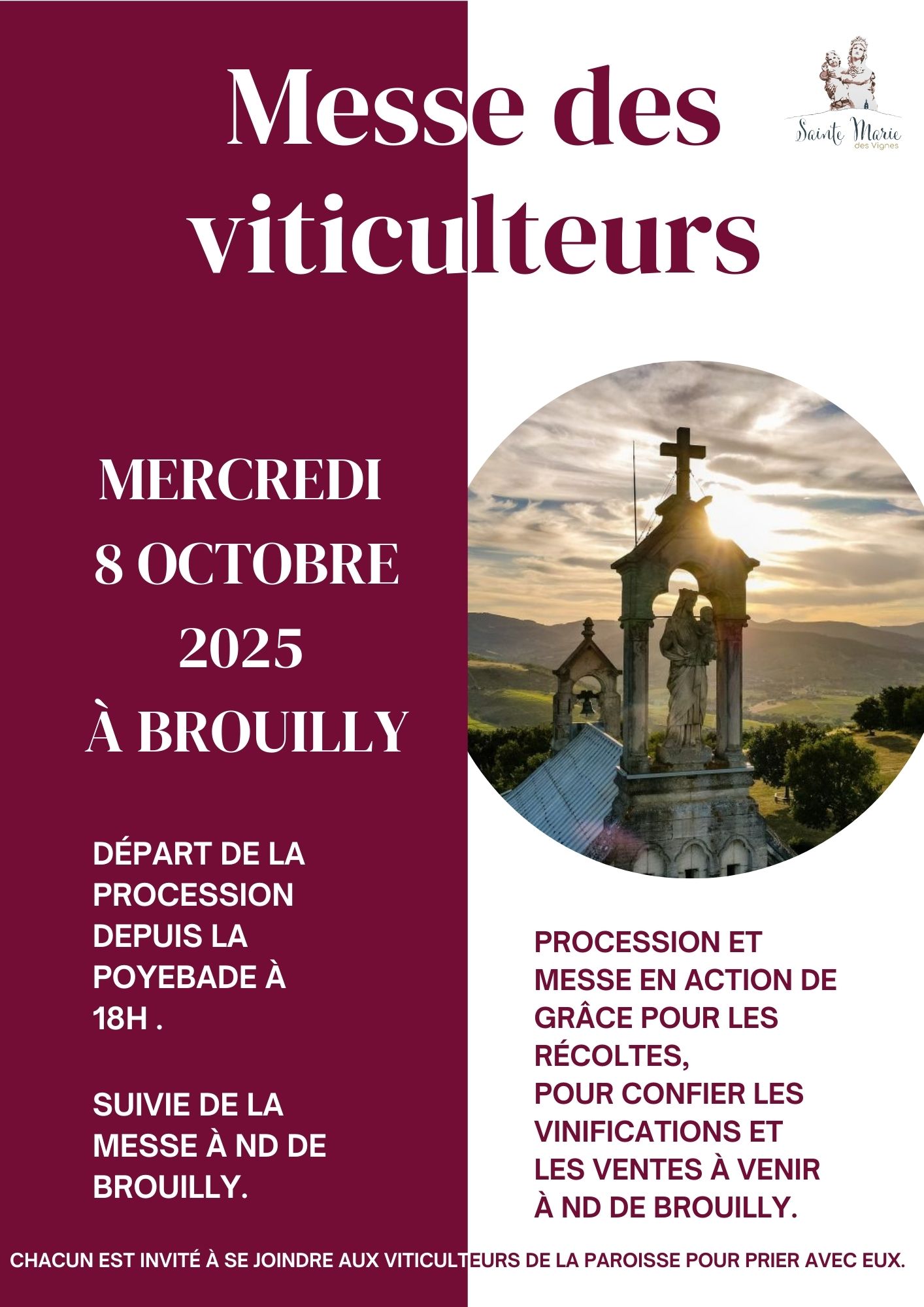 La paroisse Sainte-Marie-des-Vignes est une grande assemblée de clochers. C’est notre grande joie d’être nombreux, et notre défi d’être accueillants à chacun qui viendra se joindre à nous.